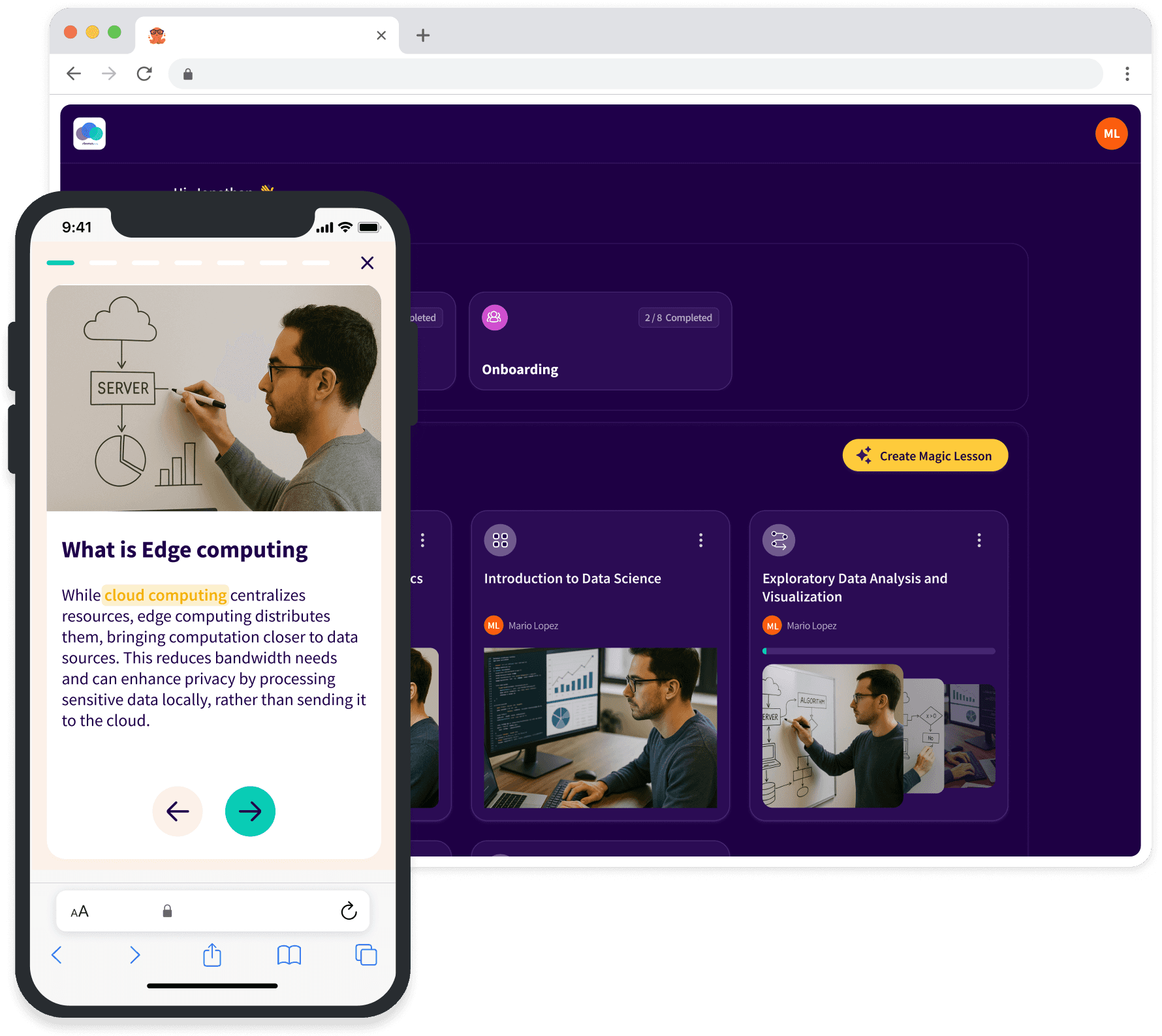 Learners can optionally access the full experience on their mobile or desktop browser